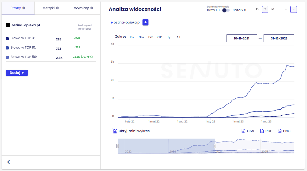 Wszystkie dane pochodzą z narzędzia Senuto i pokazują rzeczywiste wzrosty widoczności organicznej w Google.
